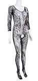 Sexy Floral Pattern Long Sleeved Open Crotch Bodystocking - One Size Lingerie
